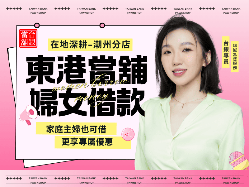 快速、彈性、安全,台銀當舖是東港地區資金週轉的首選夥伴!無論您是家庭臨時需要用錢、店家週轉,或上班族需要小額靈活資金,都能在這裡快速申辦、安心借款、輕鬆還款。